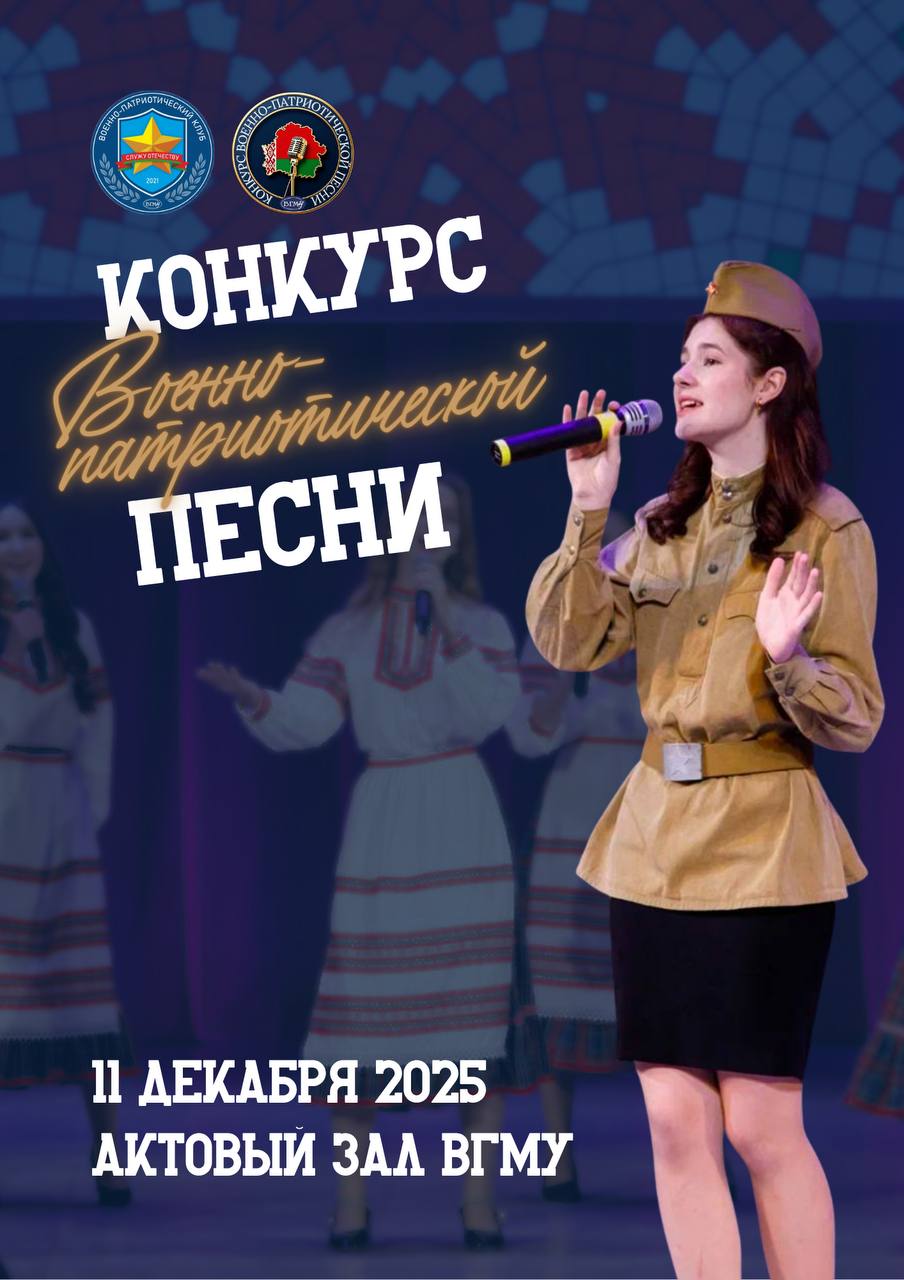 11 декабря в актовом зале ВГМУ состоялся конкурс военно-патриотической песни, приуроченный 80-летию Победы советского народа в Великой Отечественной войне и 4-ой годовщине образования военно-патриотического клуба университета «Служу Отечеству».