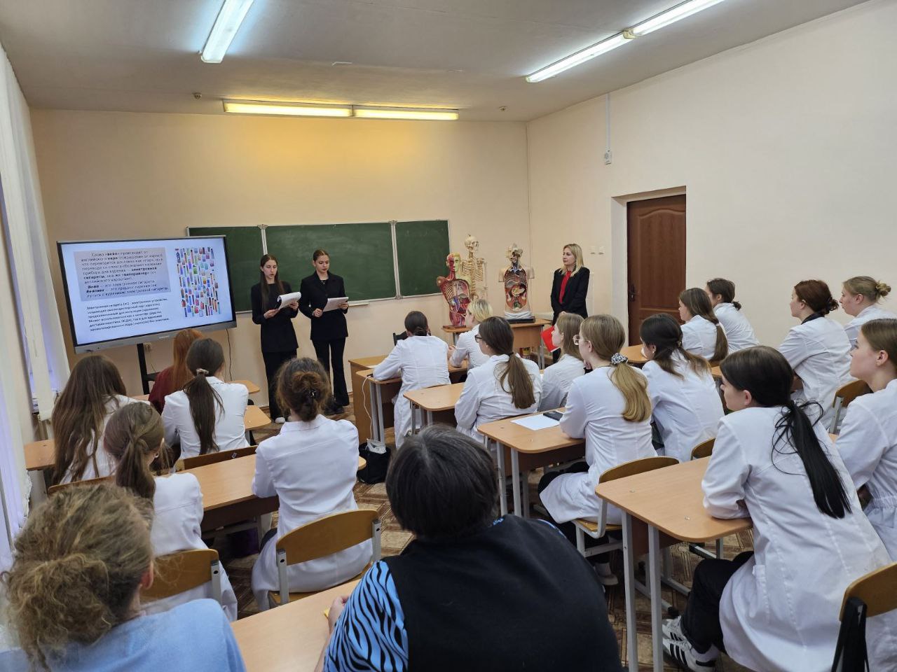 21 ноября в 202 группе отделения «Фармация» состоялся открытый час куратора "Вся правда о вреде курения электронных сигарет". Учащиеся активно приняли участие в дискуссии о вреде курения вейпов, развеяли мифы о "безвредности" электронных сигарет и ответили на вопросы викторины. В завершении часа куратора прошла интересная рефлексия: капитаны команд наклеили стикеры на манекен, обозначающие негативное влияние курения на конкретные органы. Такой наглядный метод позволил понять разрушительное действие токсинов и канцерогенов на легкие, сердце, мозг, пищеварительную и репродуктивную системы. Интерактивный подход повысил осознанность учащихся, помог сформировать профессиональную позицию фармацевтов как пропагандистов здорового образа жизни и развил критическое мышление по профилактике никотиновой зависимости.
