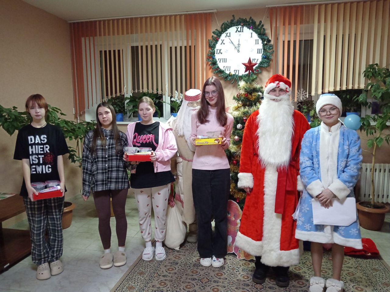 23 декабря в общежитии Витебского медицинского колледжа прошла конкурсно-игровая программа "В ритме Нового года!" Вечер был наполнен играми, шутками, новогодней музыкой. Девушки и юноши дружно участвовали в веселых конкурсах, викторинах, танцевали. Победители были награждены сладкими призами. Дед Мороз и Снегурочка поздравили всех с наступающим 2026 годом, пожелали удачи, счастья, успехов в учебе. Праздник получился искрометным, каждый из присутствующих на мероприятии получил заряд вдохновения и положительные эмоции.