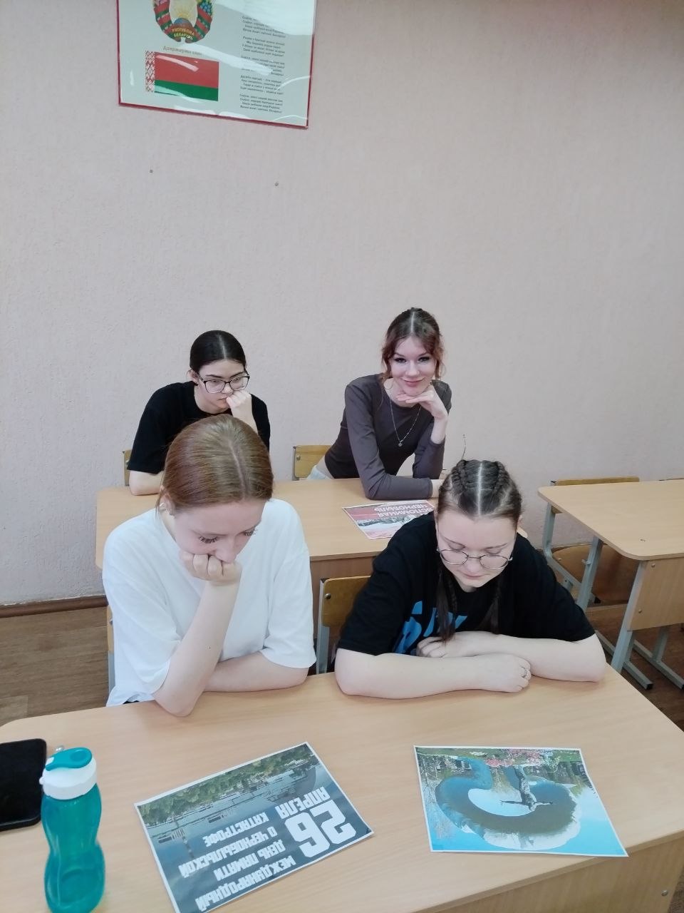Ко дню Чернобыльской трагедии в общежитии Витебского медицинского колледжа  прошел информационный час «Чернобыль. Сохраняя память», целью которого  было ознакомление  учащихся с историей чернобыльской трагедии, с подвигом, совершенным ликвидаторами аварии, формирование гражданской ответственности на примере человеческого подвига, а также осмысление причин и последствий Чернобыльской аварии.