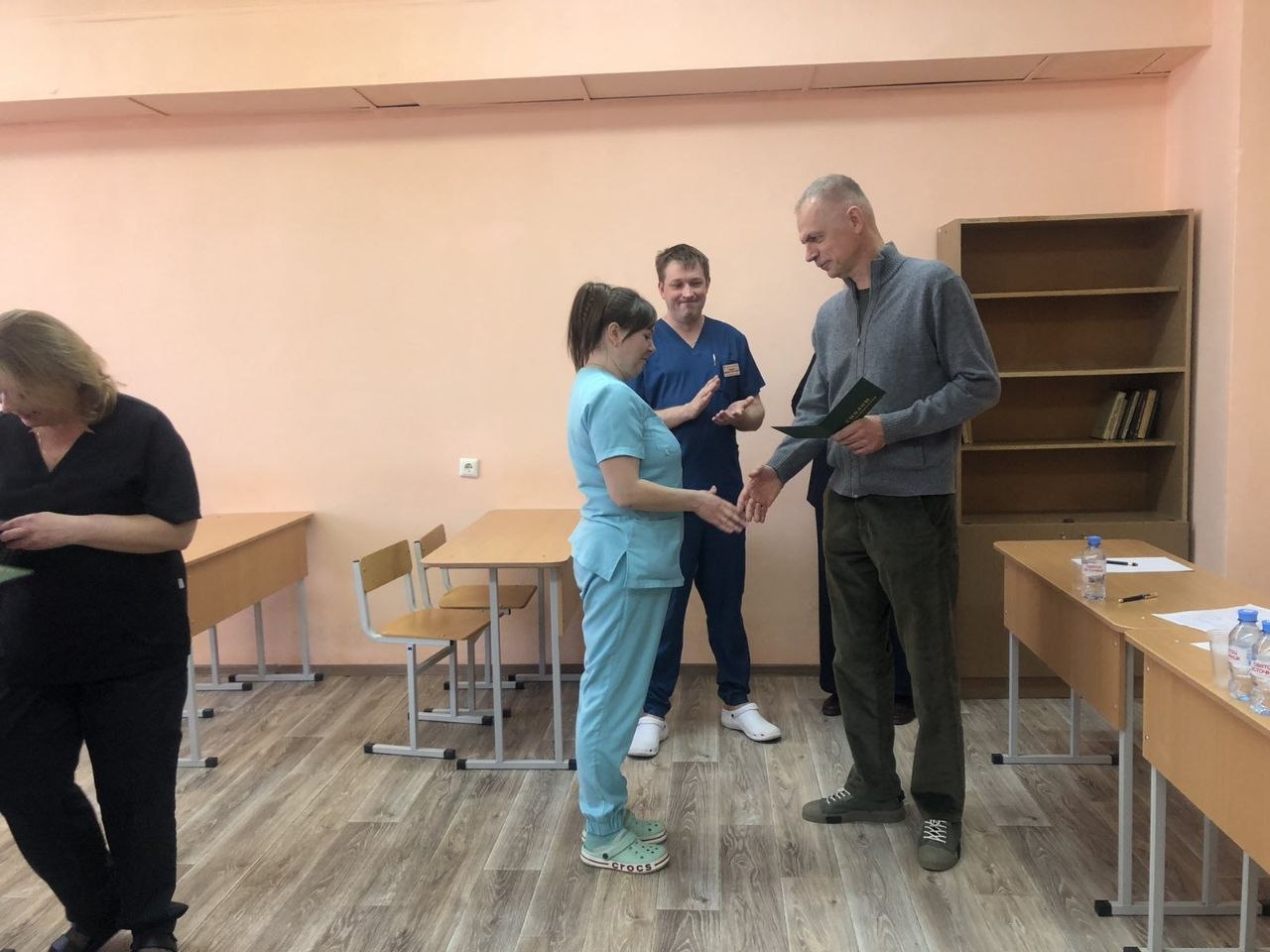 10 апреля 2026 года прошла итоговая аттестация слушателей отделения повышения квалификации и переподготовки руководящих работников и специалистов по специальности переподготовки «Анестезиология». Государственный экзамен проходил в два этапа: практическая часть в формате ОСКЭ и теоретическое собеседование с решением ситуационных задач по анестезиологии и интенсивной терапии. Задания включали широкий спектр навыков: от гигиены рук, подачи кислорода до проведения сердечно-лёгочной реанимации. По итогам экзамена все слушатели успешно прошли испытание. Председатель государственной экзаменационной комиссии Федорович А.Г., врач-анестезиолог- реаниматолог (заведующий отделением анестезиологии и реанимации) УЗ «ВОКОД» отметил высокий уровень теоретической и практической подготовки слушателей. Директор колледжа Орлова Е. А. пожелала слушателям дальнейшего профессионального роста.