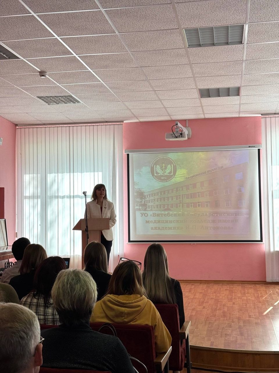 25 апреля колледж распахнул свои двери для школьников Витебска и Витебской области, Минской и Могилёвской областей, а также Российской Федерации. Гости познакомились с материально-технической базой, правилами приема и специальностями. Для них выступила агитбригада «ПрофМедикСлужба», которая ярко представила жизнь учащихся колледжа, а после официальной части будущие абитуриенты и их родители посетили музей истории колледжа. Особый интерес вызвало выступление представителей организаций-заказчиков кадров, которые рассказали об условиях работы, гарантиях молодым специалистах и возможностях целевого направления: Саулевич Ю.И. – старшая медицинская сестра, председатель сектора по профобразованию Совета сестер УЗ «ВОКБ» Болтрушевич Н.Г. – заместитель главного врача по идеологической работе ГУЗ «ВГЦП»Ответственный секретарь приемной комиссии Азарченкова А.А. подробно разъяснила особенности вступительной кампании 2026 года, результаты приема 2025 года и обратила особое внимание на преимущества целевой подготовки. Встреча прошла в формате живого диалога. Будущие абитуриенты получили ответы на все волнующие вопросы и сделали еще один шаг навстречу профессии.