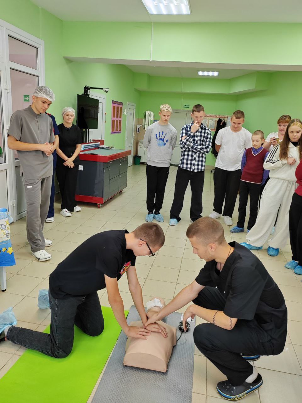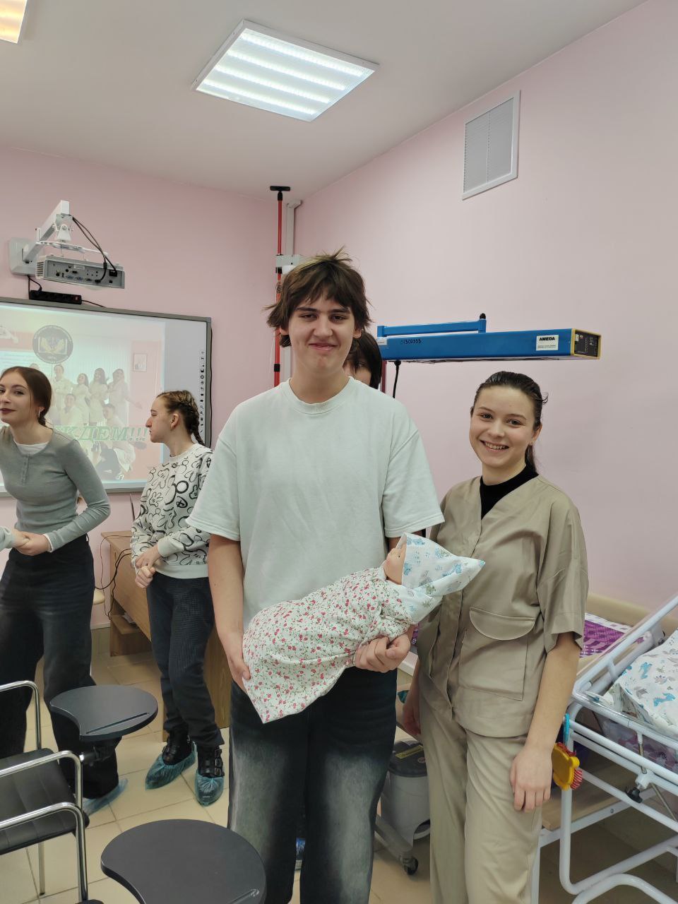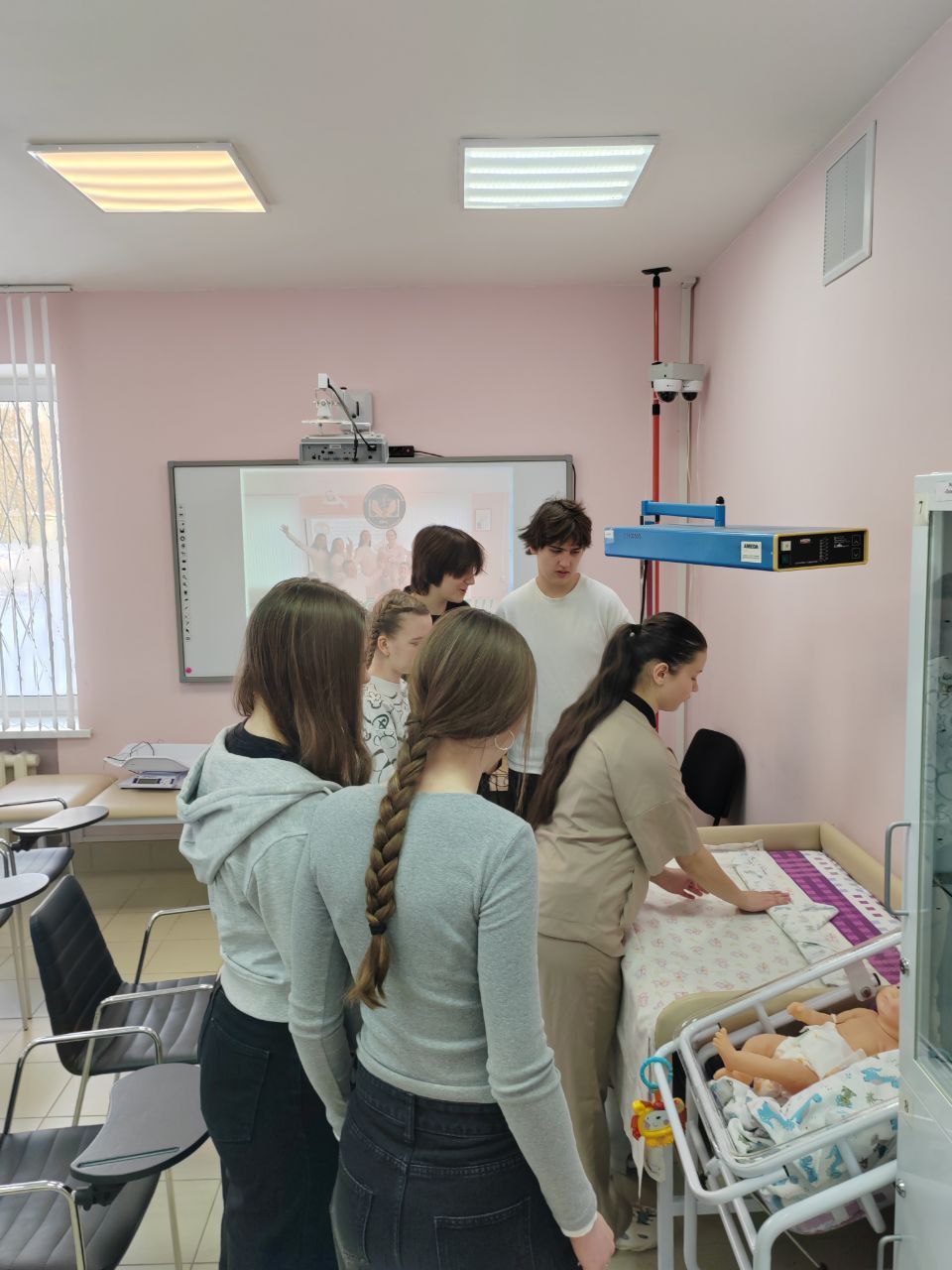 Они прошли несколько маршрутов, где на каждой «станции» их ждали практические задания:- ️«Педиатрический пост»: освоение техники пеленания новорожденных.
