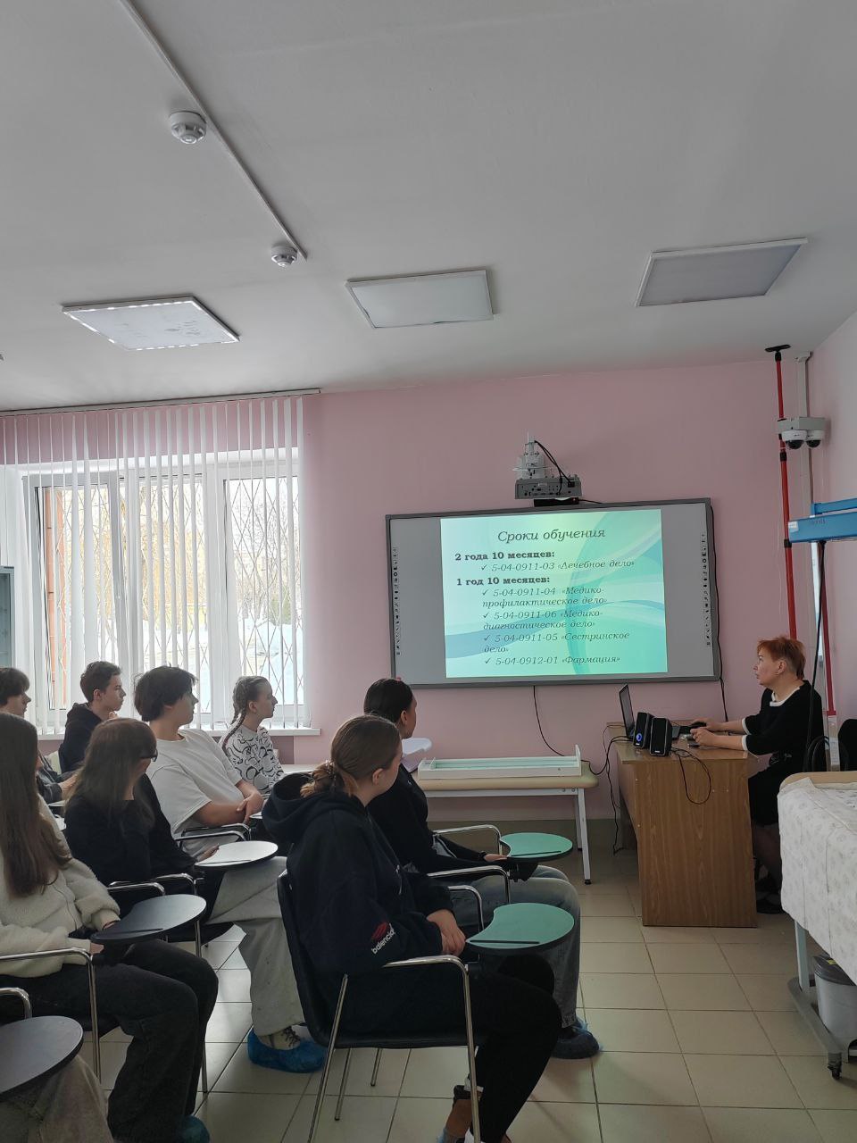 На завершающем этапе профориентационного мероприятия школьники познакомились с важной информацией о медицинских специальностях, правилах приема, условиях и преимуществах поступления в колледж на условиях целевой подготовки.