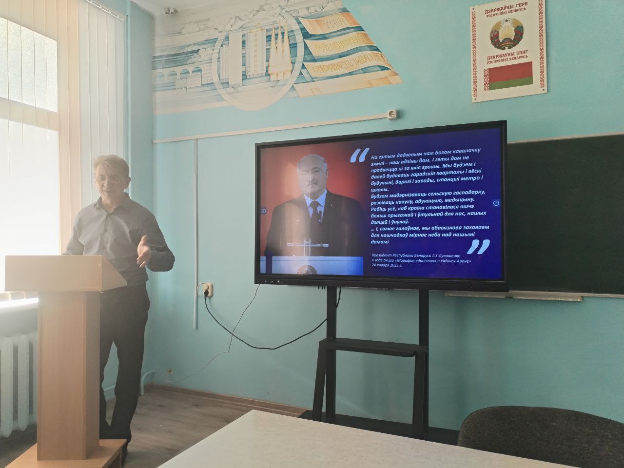В своем выступлении Андрей Иванович привел историческую справку, рассказав о положении Западной Беларуси в 1921-1939 годах, воссоединении Западной Беларуси и БССР, историческом значении воссоединения белорусского народа, праздновании воссоединения Западной Беларуси и БССР.