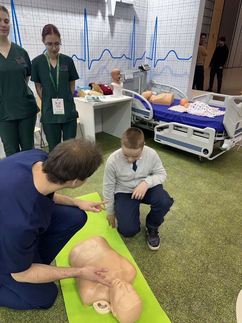 Посетители выставки смогли получить мастер - класс по оказанию базовой сердечно -легочной реанимации с использованием тренажеров- симуляторов, отработать навык с использованием жилета Геймлиха по удалению инородного тела из дыхательных путей, познакомиться со специальностями, по которым идёт подготовка специалистов в Витебском медицинском колледже, и получить ответы на интересующие вопросы.