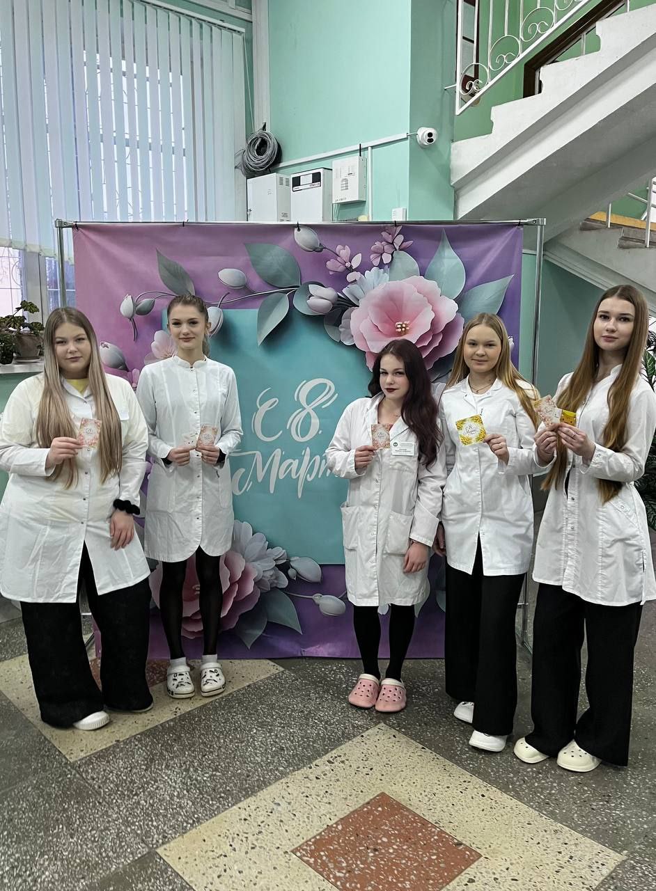 Тёплая поздравительная акция 6 марта всех девушек и женщин Витебского медицинского колледжа встречали юноши, вручали поздравительные открытки и говорили теплые поздравительные слова, а яркий баннер создавал атмосферу праздника и становился местом для фотосессий.