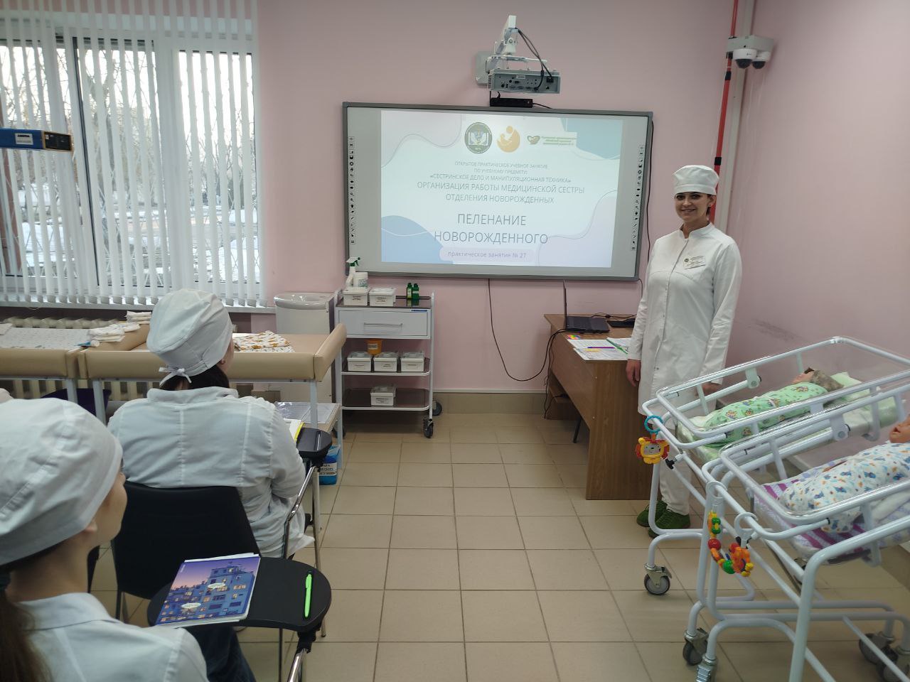 Открытое занятие по сестринскому делу: шаг в профессию с первых пелёнок! На базе лаборатории по отработке практических навыков 18 марта 2026 года прошло открытое занятие по учебному предмету «Сестринское дело и манипуляционная техника» по теме «Организация работы медицинской сестры отделения новорождённых. Пеленание новорождённого». Под руководством молодого преподавателя Светланы Сергеевны Руденковой учащиеся 2-й подгруппы группы 201 специальности «Лечебное дело» погрузились в мир заботы о самых маленьких пациентах. На занятии подробно разобрали ключевые аспекты работы: Правила подготовки медсестры к работе в палате новорождённых. Требования к проведению санитарно-эпидемиологических мероприятий. Принципы медицинского наблюдения и особенности ухода за новорождённым в палате совместного пребывания «Мать и дитя». Показания, противопоказания и возможные осложнения при пеленании. Современные правила одевания малыша, выбор и использование подгузников. Светлана Сергеевна продемонстрировала технику свободного пеленания «в шапочке», после чего будущие фельдшера-акушеры применили знания на практике. Кульминацией стала ролевая игра «Мать и дитя», где учащиеся виртуозно перевоплотились в маму, медсестру отделения новорождённых и старшую медсестру. Это позволило не только закрепить мануальные навыки, но и прочувствовать психологическую атмосферу общения с пациентом. На занятии царила доброжелательная, уютная и тёплая атмосфера. Такие занятия дарят уверенность в себе и доказывают, что наши будущие специалисты не только профессионалы, но и чуткие, внимательные, заботливые люди!