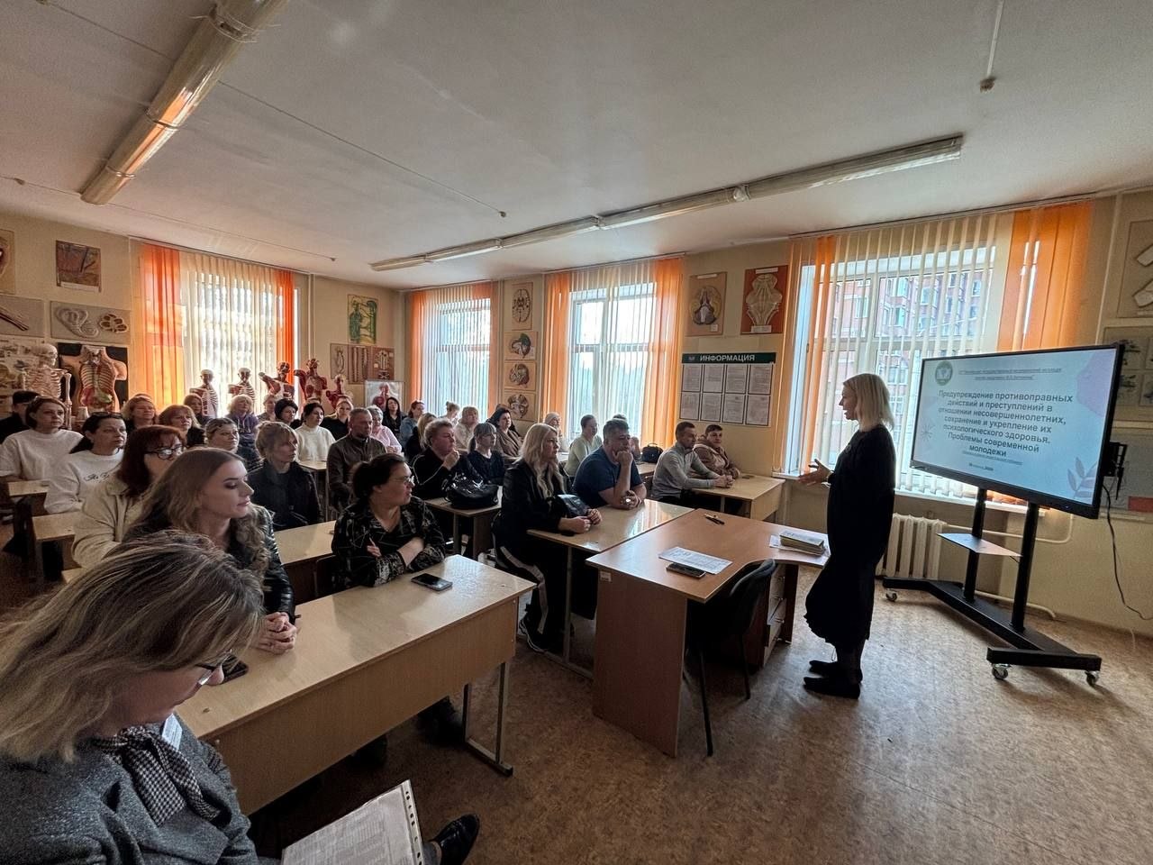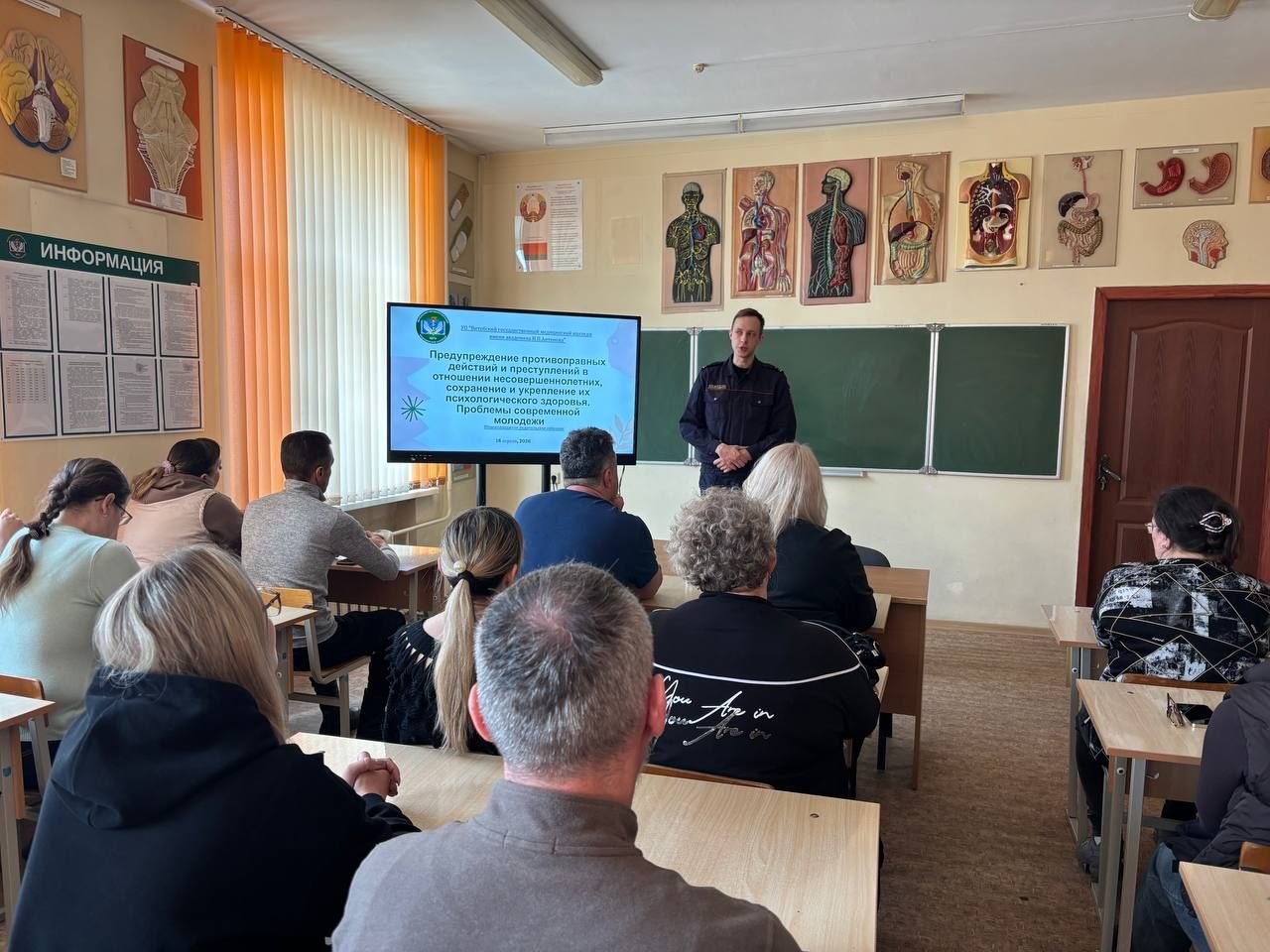 18 апреля в Витебском медицинском колледже прошло общеколледжное родительское собрание на тему "Предупреждение противоправных действий и преступлений в отношении несовершеннолетних, сохранение и укрепление их психологического здоровья". В собрании приняли участие: участковый инспектор ИДН ОВД администрации Октябрьского района г. Витебска Моржевский Е.А.; заместитель директора по УР Денисова С.Д.; заместитель директора по ВР Азарченкова А.А.; педагог-психолог Слижикова Ю.А. Были рассмотрены вопросы: Профилактика противоправного поведения несовершеннолетних, предупреждение экстремизма; Профилактика незаконного оборота наркотических средств; Профилактика наркомании, правовые и медицинские последствия потребления наркотических средств, психотропных веществ и их аналогов; Профилактика суицидоопасного поведения, насилия, жестокого обращения с детьми; Профилактика киберпреступлений, мошенничество в сети-Интернет; Профилактика детского травматизма; Планирование летней занятости и оздоровление; Ответственность родителей за воспитание несовершеннолетних, возможности контроля за пребыванием их в сети Интернет (услуги "Родительский контроль");