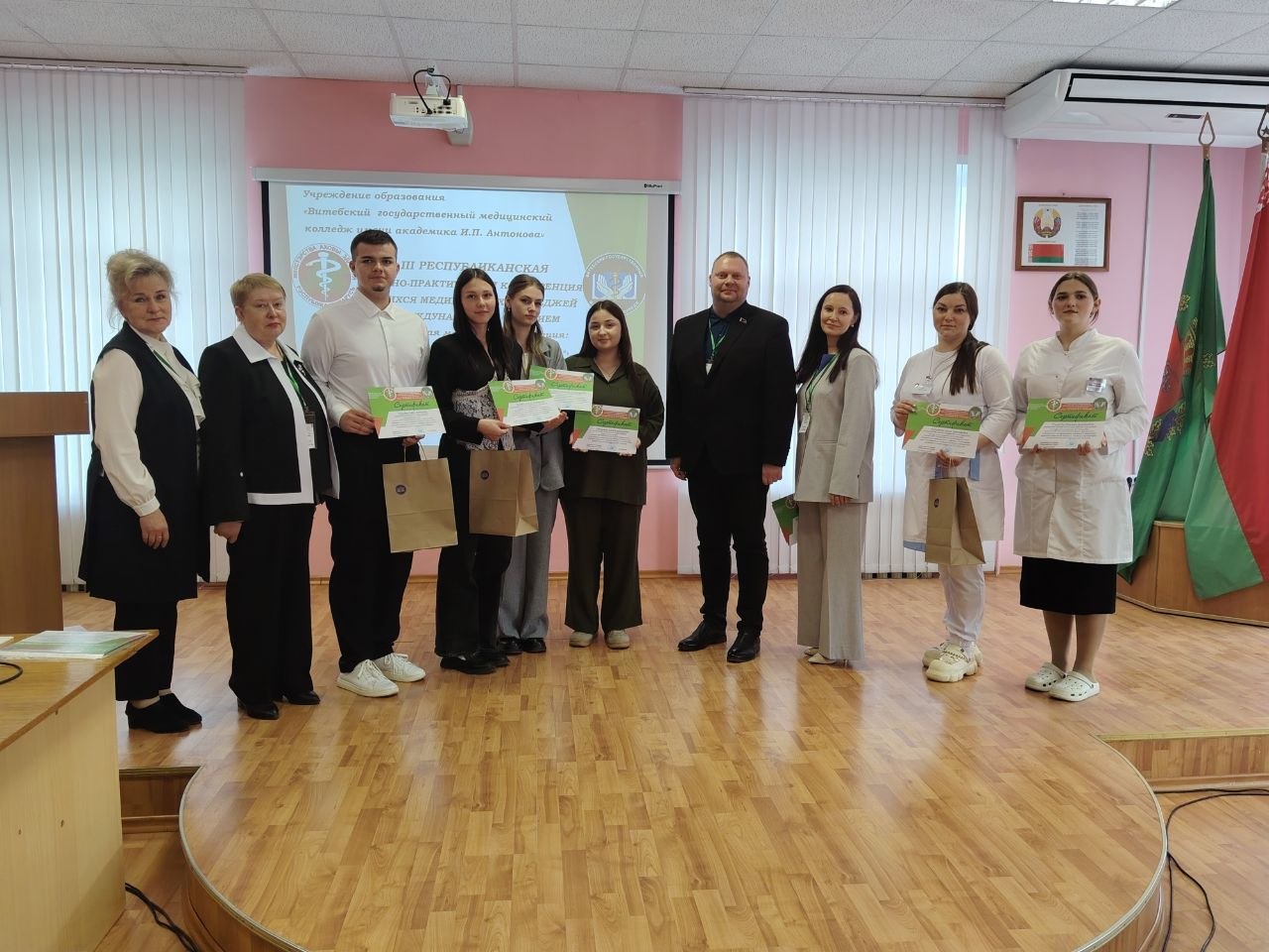 III Республиканская с международным участием научно-практическая конференция учащихся медицинских колледжей "Современная медицина и фармация: традиции, инновации, перспективы", посвященная памяти академика И.П. Антонова 27 марта 2026 года в колледже состоялась III Республиканская с международным участием научно-практическая конференция учащихся медицинских колледжей "Современная медицина и фармация: традиции, инновации, перспективы", посвященная памяти академика И.П. Антонова. В конференции приняли участие более ста талантливых учащихся и их преподаватели из 14 медицинских колледжей Республики Беларусь, 16 учреждений среднего специального образования из разных регионов Российской Федерации, Республики Казахстан, Республики Узбекистан. С каждым годом география конференции расширяется. К участникам присоединились Кызылординский медицинский высший колледж (Республика Казахстан), Санкт –Петербургское государственное бюджетное профессиональное образовательное учреждение «Медицинский колледж №1», 2-ой Республиканский техникум общественного здоровья имени Абу Али ибн Сино(Республика Узбекистан), Ургенчский медицинский техникум общественного здоровья имени Абу Али ибн Сино (Республика Узбекистан), Гиждуванский медицинский техникум общественного здоровья имени Абу Али ибн Сино (Республика Узбекистан). В приветственном слове к участникам конференции директор колледжа Елена Александровна Орлова отметила, что конференция становится центром внимания педагогической и медицинской общественности, и не только в день проведения, играет значительную роль в укреплении международных связей, повышении качества образования. Открыли конференцию: Ковалёва Л.Ф., заместитель начальника главного управления по здравоохранению Витебского облисполкома; Тищенко Е.Э., начальник отдела научно-методического обеспечения среднего специального медицинского и фармацевтического образования Республиканского центра научно-методического обеспечения учреждения образования “Белорусский государственный медицинский университет”; Передков А.В., главный врач ГУ "Витебский зональный центр гигиены и эпидемиологии". Живой интерес вызвали видеоприветствия организаторам и участникам конференции от коллег из 2-ого Республиканского техникума общественного здоровья имени Абу Али ибн Сино, Андижанского техникума общественного здоровья имени Абу Али ибн Сино ( Республика Узбекистан) , из Курского и Псковского медицинских колледжей. Заместитель директора по воспитательной работе Анжела Александровна Азарченкова рассказала об известных выпускниках колледжа. Участники пяти секций представили разнообразные по тематике и актуальности работы. Жюри отметило высокий уровень представленных на конференции работ. Директор колледжа Орлова Е.А., подводя итоги, сказала: «Многие исследовательские работы представляют и обосновывают научные гипотезы, темы работ доступно и логично изложены. Уверены, что результаты научно-практической конференции будут стимулом для дальнейшего творческого роста обучающихся и преподавателей, а предложенные рекомендации найдут своё применение в практической деятельности».