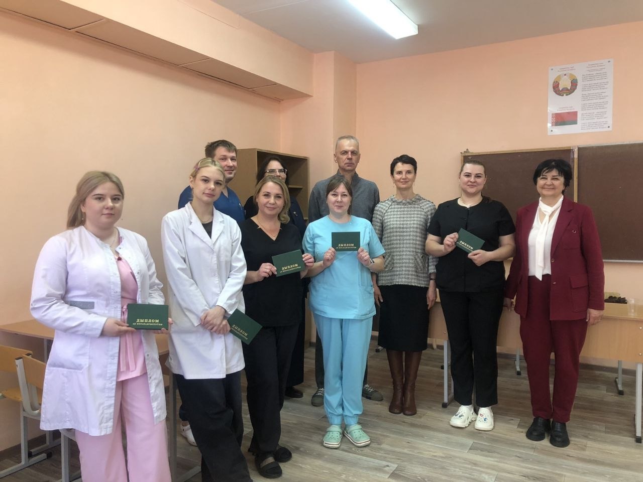 10 апреля 2026 года прошла итоговая аттестация слушателей отделения повышения квалификации и переподготовки руководящих работников и специалистов по специальности переподготовки «Анестезиология». Государственный экзамен проходил в два этапа: практическая часть в формате ОСКЭ и теоретическое собеседование с решением ситуационных задач по анестезиологии и интенсивной терапии. Задания включали широкий спектр навыков: от гигиены рук, подачи кислорода до проведения сердечно-лёгочной реанимации. По итогам экзамена все слушатели успешно прошли испытание. Председатель государственной экзаменационной комиссии Федорович А.Г., врач-анестезиолог- реаниматолог (заведующий отделением анестезиологии и реанимации) УЗ «ВОКОД» отметил высокий уровень теоретической и практической подготовки слушателей. Директор колледжа Орлова Е. А. пожелала слушателям дальнейшего профессионального роста.