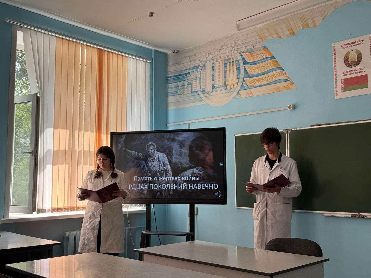 22 июня — один из самых скорбных дней в истории нашей страны. Накануне этой даты, 20 июня, в Витебском медицинском колледже прошел урок-реквием, посвящённый Дню всенародной памяти жертв Великой Отечественной войны и геноцида белорусского народа. Ребята рассказали о героических защитниках Брестской крепости, выпускниках колледжа - участниках Великой Отечественной войны, почтили павших минутой молчания, посмотрели видео о детях войны, прочли проникновенные стихи о героях войны и Великой Победе. Урок-реквием стал трогательным напоминанием о мужестве и жертвах защитников Родины. Важно передавать эстафету памяти из поколения в поколение, чтобы в сердцах потомков навечно жила благодарность героям, отстоявшим нашу свободу и независимость.