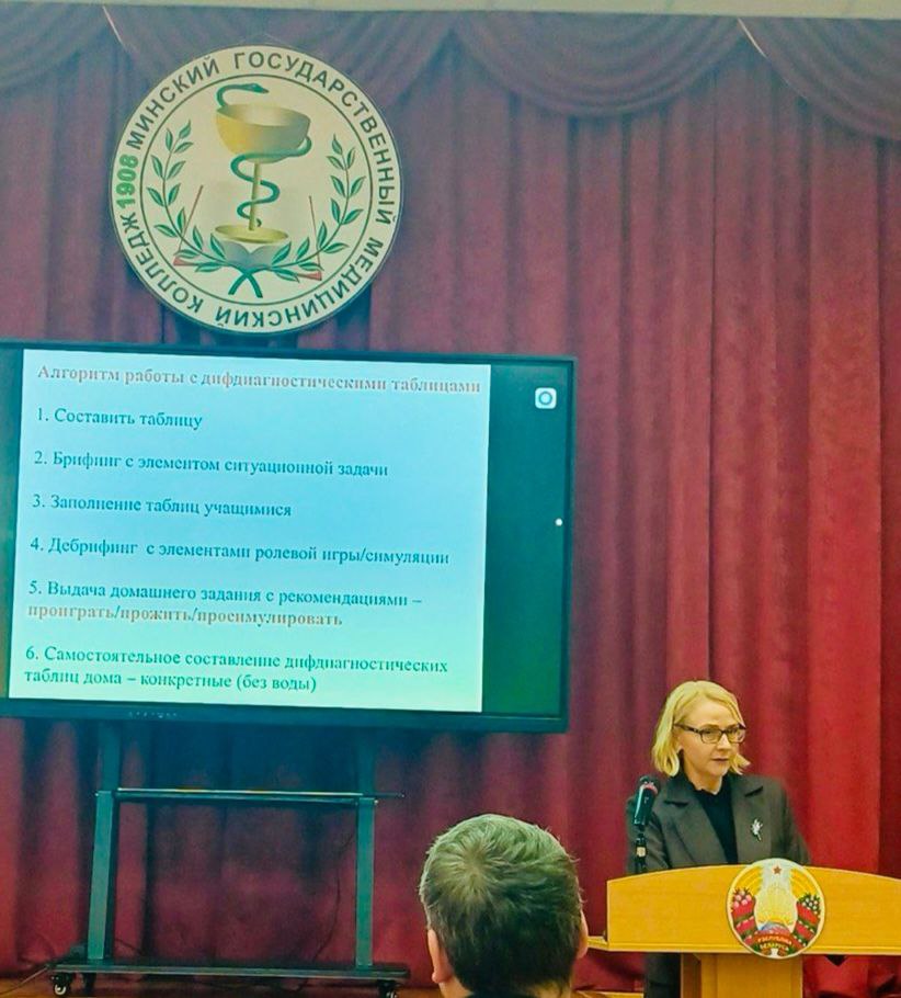 5 ноября заведующий отделением повышения квалификации Куликова Татьяна Петровна, преподаватели Смальцер Надежда Владмировна, Барсукова Ирина Геннадьевна , Никитина Мария Михайловна приняли участие в республиканском семинаре для начинающих преподавателей "Актуальные вопросы профессиональной адаптации и совершенствования педагогического мастерства начинающих преподавателей в медицинском колледже". Куликова Т. П. выступила с докладом "Открытое учебное занятие как визитная карточка колледжа:опыт проведения в рамках международного сотрудничества". Смальцер Н. В. представила опыт работы по теме "От знаний к решениям: инструменты формирования клинического мышления у учащиеся медколледжа".