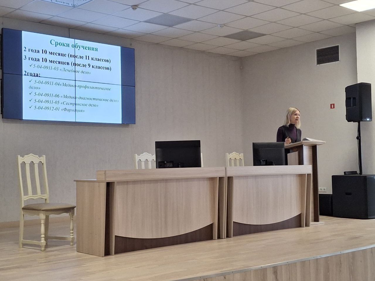 Ребята познакомились со специальностями, по которым осуществляется прием в колледж, преимуществами целевой подготовки и особенностями вступительной кампании в 2025 году.