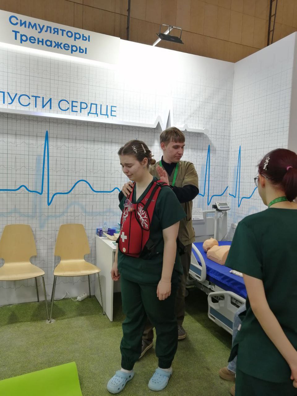 Посетители выставки смогли получить мастер - класс по оказанию базовой сердечно -легочной реанимации с использованием тренажеров- симуляторов, отработать навык с использованием жилета Геймлиха по удалению инородного тела из дыхательных путей, познакомиться со специальностями, по которым идёт подготовка специалистов в Витебском медицинском колледже, и получить ответы на интересующие вопросы.