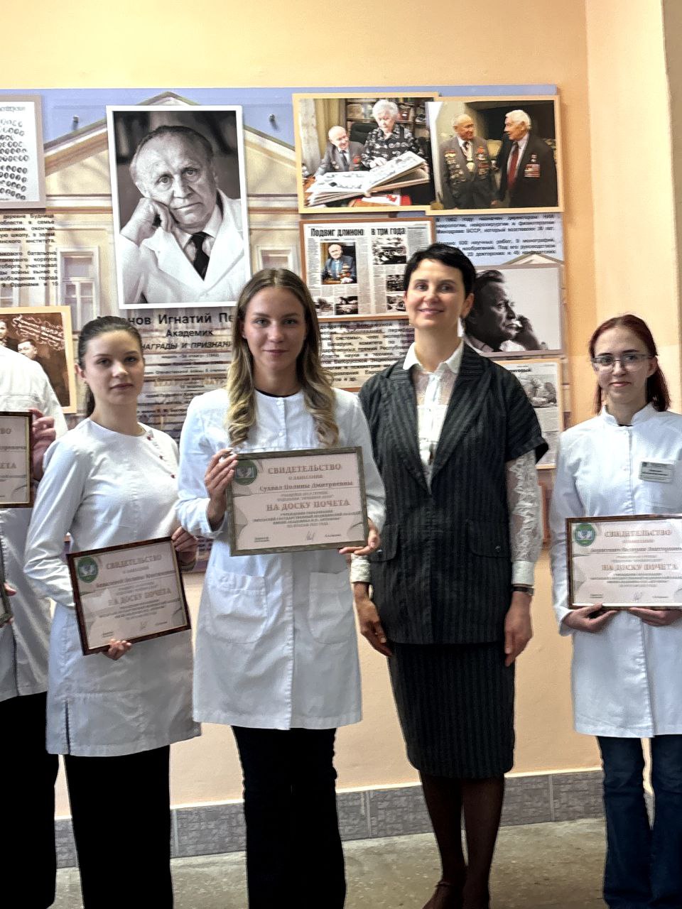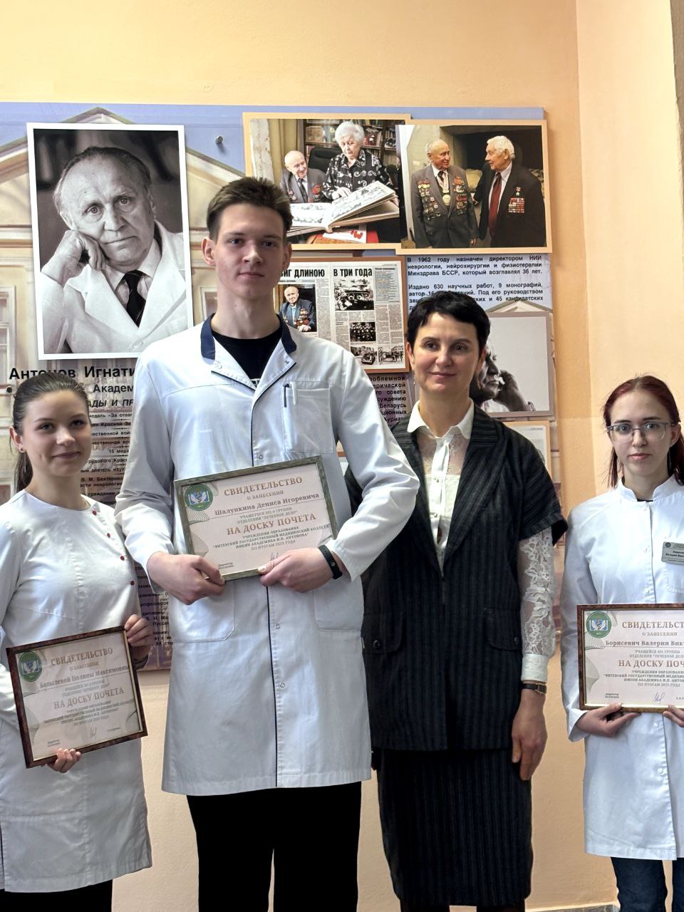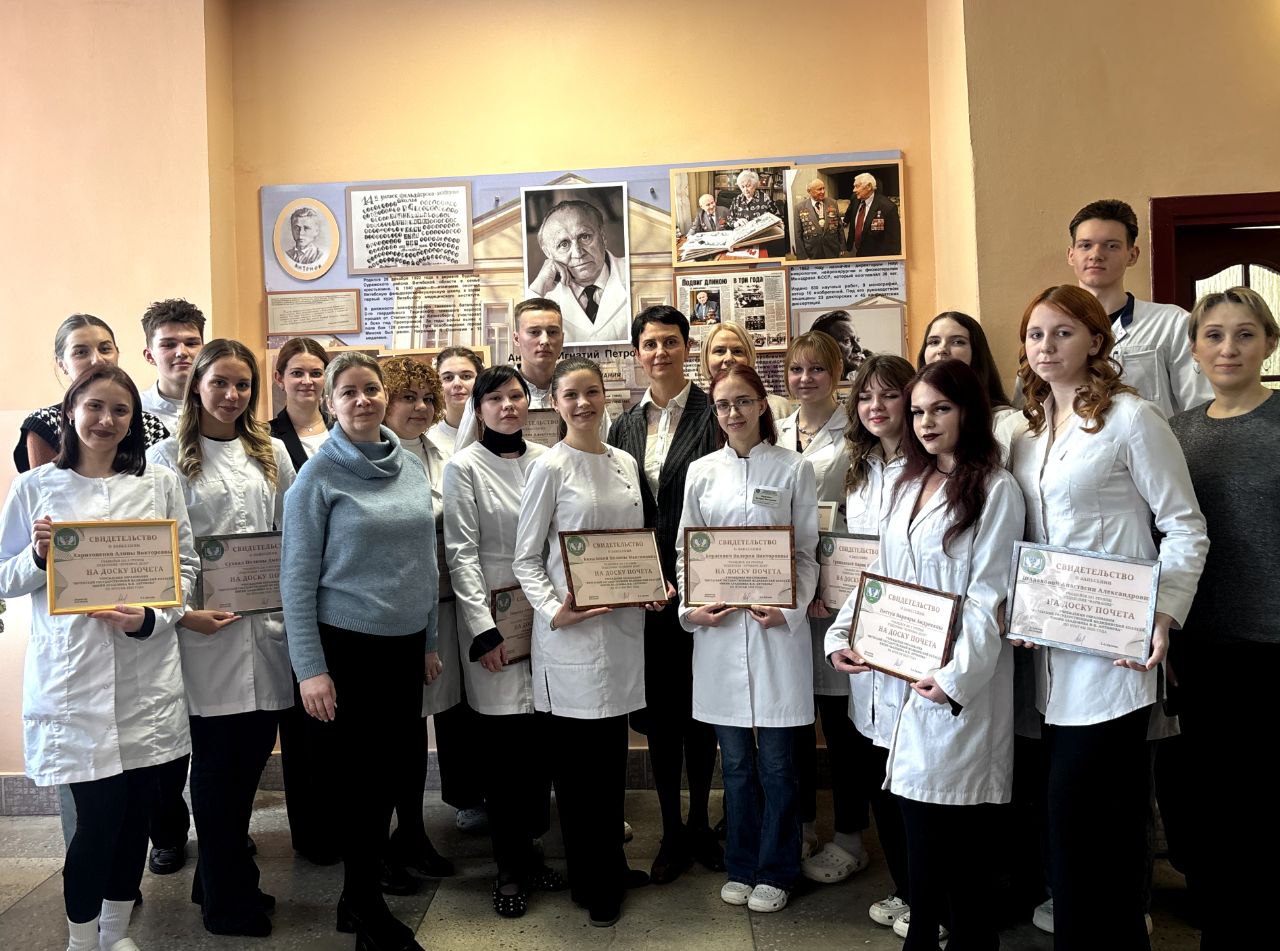 18 февраля в Витебском медицинском колледже в рамках декады мужества открылась обновленная доска Почёта учащихся, достигших высоких результатов в учебной, исследовательской, спортивной, творческой и общественной деятельности, победителей олимпиад профессионального мастерства, которые внесли весомый вклад в развитие и укрепление престижа колледжа в 2025 году. Директор колледжа Орлова Е.А. обратилась к собравшимся со словами поздравления, а затем вручила Свидетельства о занесении на доску Почёта учащимся, удостоенным этой высокой чести. Учащиеся поблагодарили руководство колледжа, преподавателей за предоставленные возможности для учёбы и всестороннего личностного развития. Завершилось мероприятие общим фото у доски Почета.