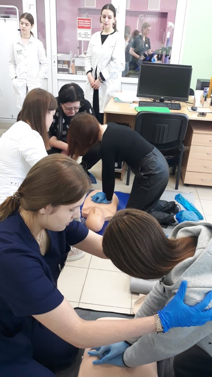 28.03.2026 продолжился уникальный межведомственный обучающий проект «Запусти сердце» по обучению учащихся 10-х классов учреждений общего среднего образования базовым навыкам оказания первой помощи при состояниях, представляющих угрозу для жизни и здоровья человека, методу оказания сердечно - легочной реанимации. Лабораторию по отработке навыков нашего колледжа посетили учащиеся Сенненского района. Для участников были организованы специальные мастер-классы и учебные сессии. Занятие с учащимися на высоком профессиональном уровне провели Глотова Л. В., Никитина М.М., Микодина Е. А., Карнилова Л. В. Помогали им тьюторы 301.9 группы отделения "Лечебное дело". Школьники смогли подробно ознакомиться с техникой выполнения непрямого массажа сердца, искусственной вентиляции легких, методами временной остановки кровотечений, наложением транспортных шин на верхние и нижние конечности при различных повреждениях. Практическое применение полученных знаний отрабатывалось на современных тренажёрах, имитирующих реальные ситуации остановки сердечной деятельности. Каждый участник попробовал себя в роли спасателя, почувствовал всю ответственность и значимость правильного подхода к проведению сердечно-легочной реанимации, получил персональные рекомендации от наставника. Подобные образовательные инициативы способствуют повышению уровня осведомленности среди молодежи относительно вопросов здоровья и помогают воспитывать ответственное отношение к собственной жизни и здоровью окружающих.