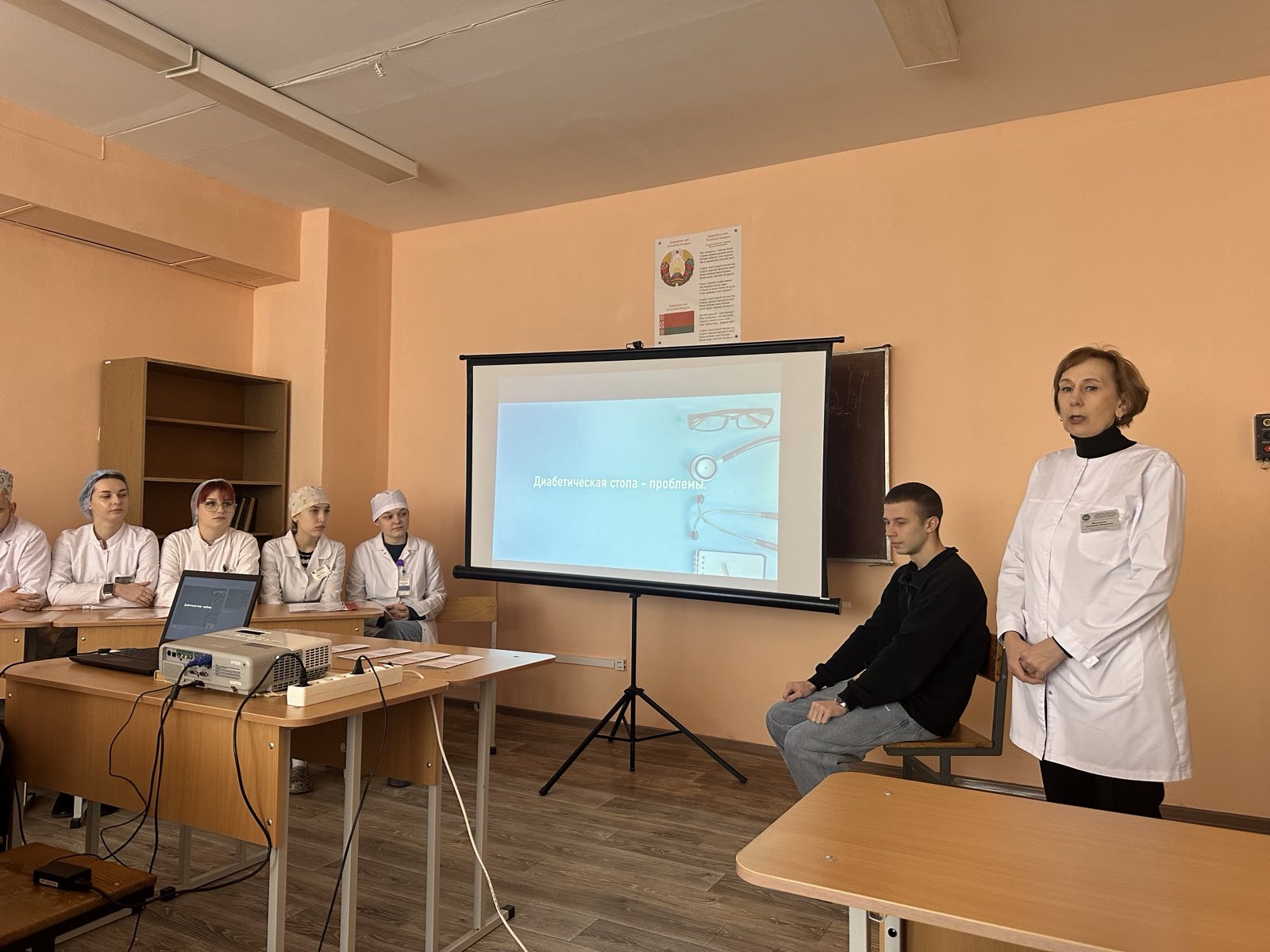 С 23 по 26 марта в Витебском государственном медицинском колледже прошла интегрированная неделя учебных предметов цикловых комиссий №1, №3 по теме: "Жизнь с диабетом - не сахар". Одна из целей предметной недели повышение осведомленности учащихся о сахарном диабете. Началась неделя с интеллектуальной игры, которую подготовила и провела в 301 группе отделения «Лечебное дело» преподаватель Скок Т.В., кулинарный батл по теме: "Кухня без вреда" воплотила начинающий преподаватель Никитина М.М. с 301 группой отделения «Сестринское дело», заседание кружка по хирургии, травматологии, ортопедии по теме "Диабетическая стопа - проблемы" организовала преподаватель: Москалёва Л. П., с учащимся 401 группы отделения «Лечебное дело», театрализованное представление "Однажды в истории….." устроили преподаватели Онисимова Н.А., Карнилова Л.В. с 401 и 301 группами отделения «Лечебное дело», обучающий семинар -практикум по теме: "Гестационный сахарный диабет", провели преподаватели: Максименко Ж.В., Ижохина Н.Г. и Зубрина О.К. Участники: 401 и 301 группы отделения «Лечебное дело». Завершали неделю «Краткий курс в интерактивных брошюрах по теме: "Школа сахарного диабета" учащиеся 302 группы отделения «Сестринское дело под руководством преподавателя Смальцер Н.В. и предметная олимпиада по педиатрии по теме: "Особенности сахарного диабета у детей", организованная преподавателями Галицкой В.В. и Панковой В.А. Учащиеся 401 группы отделения «Лечебное дело» показали достаточный уровень знаний во всех турах. По итогам напряженной борьбы и многоэтапной проверки работ, жюри определило победителей олимпиады. Ими стали Корсакова Дарья Сергеевна-1 место, Филипова Вероника Дмитриевна - 2 место, Кузнецова Дарья Юрьевна- 3 место. Все мероприятия предметной недели прошли на высоком методическом уровне и вызвали у учащихся яркие эмоции и незабываемые впечатления.