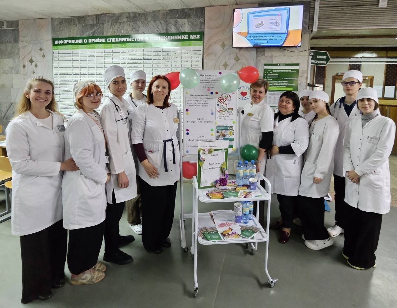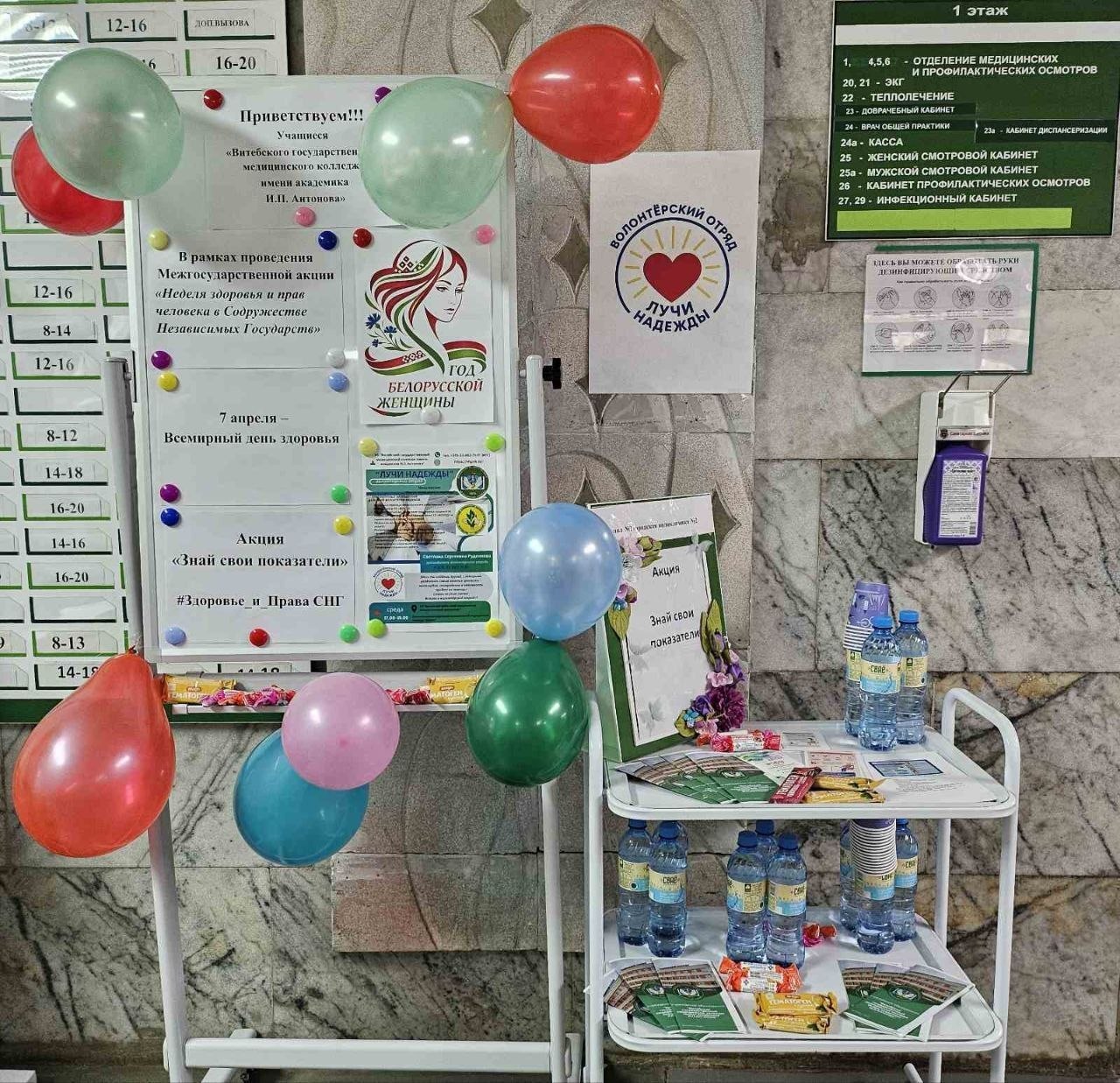 Здоровье начинается с тебя! 7 апреля в рамках Всемирного дня здоровья учащиеся группы 201.9 «Лечебное дело» Витебского медицинского колледжа вместе с преподавателем Руденковой Светланой Сергеевной, сотрудниками поликлиники №2 г.Витебска организовали и провели акцию «Знай свои показатели». Учащиеся измерили все самые важные показатели у посетителей поликлиники: Рост, Вес, Артериальное давление, Пульс Уровень, кислорода в крови (O2), Индекс массы тела (ИМТ), Экспресс-анализ на уровень глюкозы. А чтобы порадовать пациентов, подготовили вкусные бонусы и полезные памятки о здоровом образе жизни. Быть здоровым — это знать свои цифры и беречь себя! #Здоровье_и_Права_СНГ #ВсемирныйДеньЗдоровья #ЗнайСвоиПоказатели #ВолонтерВГМК #ВитебскийГМК